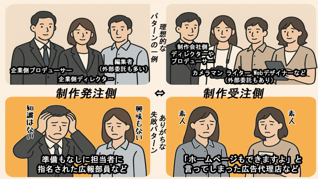 一方の依頼主(エンドクライアント)も似たりよったりです。「広報」とは呼ばれているけども、製造部門から急に異動してきた人でした。また、Web関連だけの専任でもありませんでした。