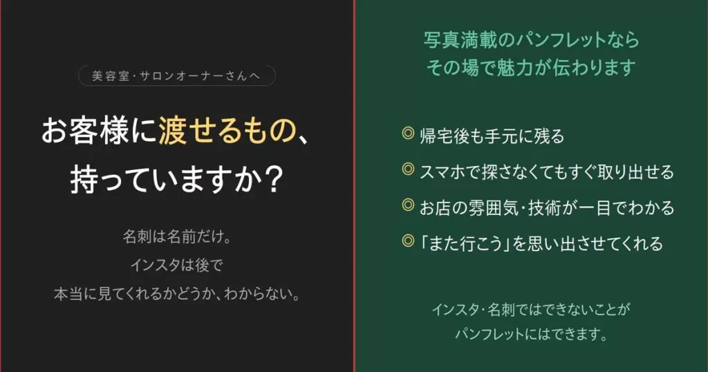 美容室・サロンの魅力が一目瞭然——写真・文章・デザイン込みのパンフレット10万円